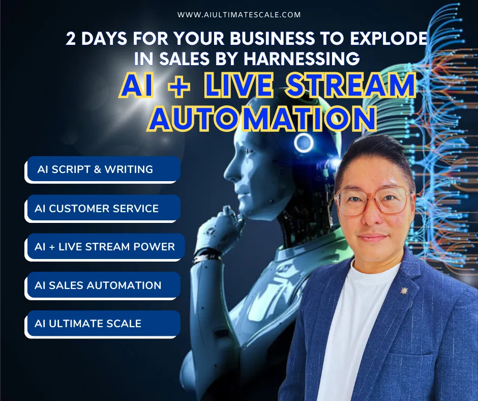 AI Ultimate Scale & Andy Neo cannot and does not make any guarantees about your ability to get results or earn any money with our ideas, information, tools, or strategies. Nothing on this page, any of our websites, or any of our content or curriculum is a promise or guarantee of results or future earnings, and we do not offer any legal, medical, tax or other professional advice. Any financial numbers referenced here, or on any of our sites, are illustrative of concepts only and should not be considered average earnings, exact earnings, or promises for actual or future performance. Use caution and always consult your accountant, lawyer or professional advisor before acting on this or any information related to a lifestyle change or your business or finances. You alone are responsible and accountable for your decisions, actions and results in life, and by your registration here you agree not to attempt to hold us liable for your decisions, actions or results, at any time, under any circumstance.